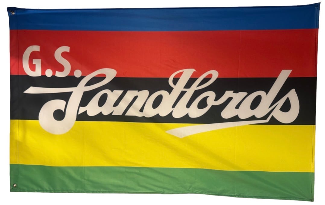 The flag of the World Champion GS Landlords Crew in big 56 x 34.5 inch living color. This is the only product currently available for the team. Represent in all situations and locations. Take it to the race, keep it at your place, it’s always in your face. Has been known to attract bike weirdos. We can’t be responsible for that. Free shipping in the US. Typically delivered 6-8 days from payment clearance . Currently available only in the US. Will update when worldwide shipping available.